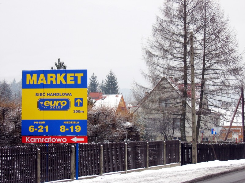 Jadąc od strony miasta w kierunku na Szczyrk i Bielsko - Białą po minięciu stacji benzynowej Orlen (za centrum) należy skręcić na most i przejechać przez rzekę Wisłę. Po drodze należy zwracać uwagę na znaki drogowe (na białym tle). Najpierw pojawi się znak "Kamratowo 350 m" potem "Kamratowo 50m w lewo" i ostatni znak znajduje się po lewej stronie z napisem "Kamratowo" ze znaczkiem strzałki w lewo. Ten ostatni znak to czerwona tablica z białymi literami. Wszystkie znaki są wykonane folią odblaskową widoczną także w nocy w świetle reflektorów.